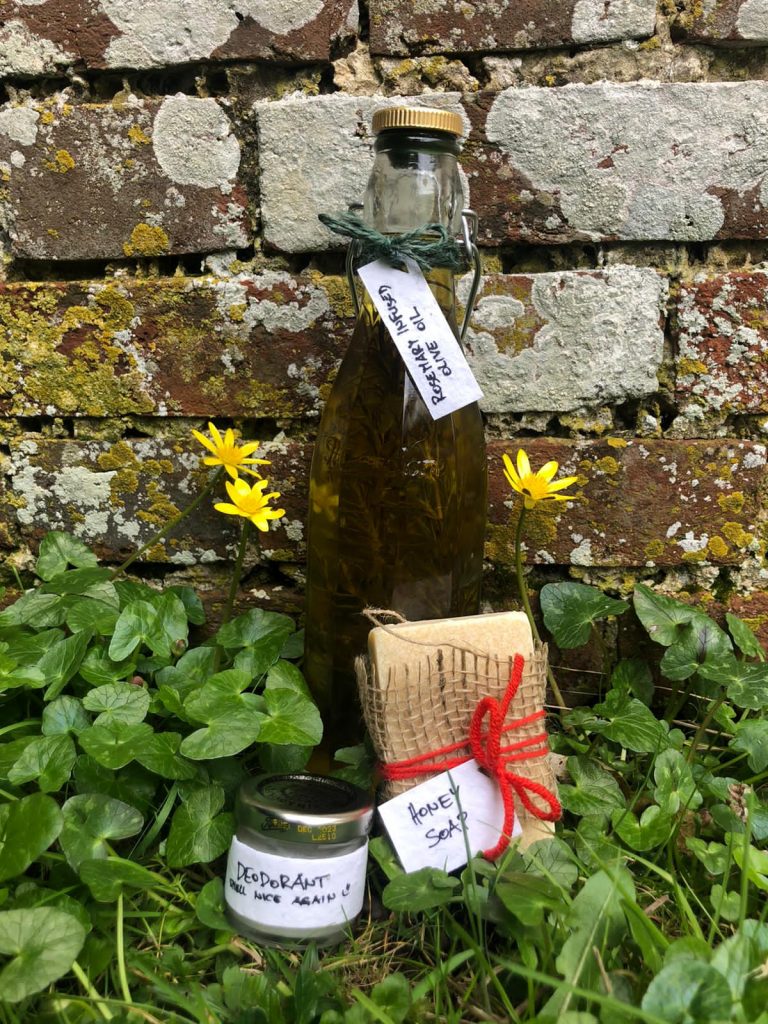 I live in the community at A Rocha UK’s Partner in Action, Ashburnham Place and with some friends we have a Whatsapp group to share and encourage each other in eco-friendly living. We meet weekly and enjoy doing lots of different eco projects together; making products instead of buying them. We have recently made our own soap, deodorant and body moisturising bars. We pick a theme each week and then create things around that. A couple of weeks ago I had to cut back some rosemary in my garden so we made rosemary infused oil, rosemary butter and rosemary lemonade (my personal favourite!).