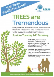 Half-term family fun event! Love your trees, learn their names, make art with their bark, collect wood for a bonfire and banish winter blues…