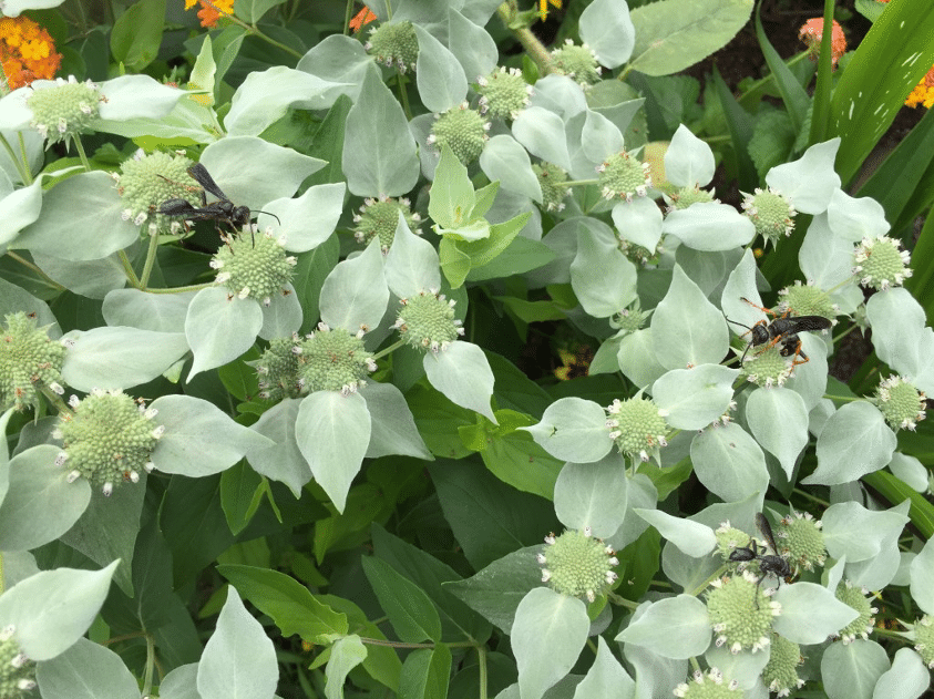 Mountain Mint (Pycnanthemum) attracting hosts of bees and wasps. Image by: John Humphreys