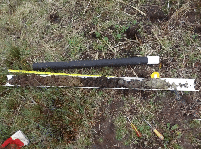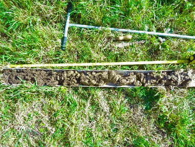 I have recently been literally unearthing the much longer history that is preserved below ground which is giving clues to the vegetation patterns seen at Foxearth Meadows. Observing the vegetation on the meadow and how one stand of a dominant species suddenly changes to another and then to much more diverse flora I have been asking – why? We decided to install a dipwell system to measure changes in the ground water levels and see if that was a significant factor in the distribution of different plant communities. Basically, this is removing a 4 foot deep soil core sample using a soil auger and placing a perforated plastic pipe in the vacant hole. The ground water levels can then be measured in the pipe to reveal changes over time. For this task I am grateful to Paul Burgess for making an electronic ‘buzz stick’ measuring device. I currently delight in demonstrating this to allcomers whether young or old or whether they realise yet how fascinating hydrology is!