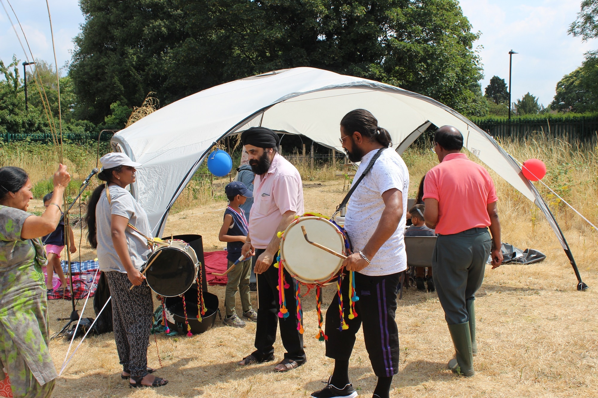Activities included a drum workshop, a beehive demonstration from the Twickenham Bee Association, a nature trail quiz and creative activities including willow craft and wooden badge making. St Anselm’s Church Youth Group wowed the crowd with a dance routine and a street drama piece about the environment. We were regaled with some traditional songs lead by members of our local Sikh Gurdwara. Four children from Norwood Green Junior School also impressed with their storytelling on topics related to nature, making fantastic use of props and face paint to tell their stories.